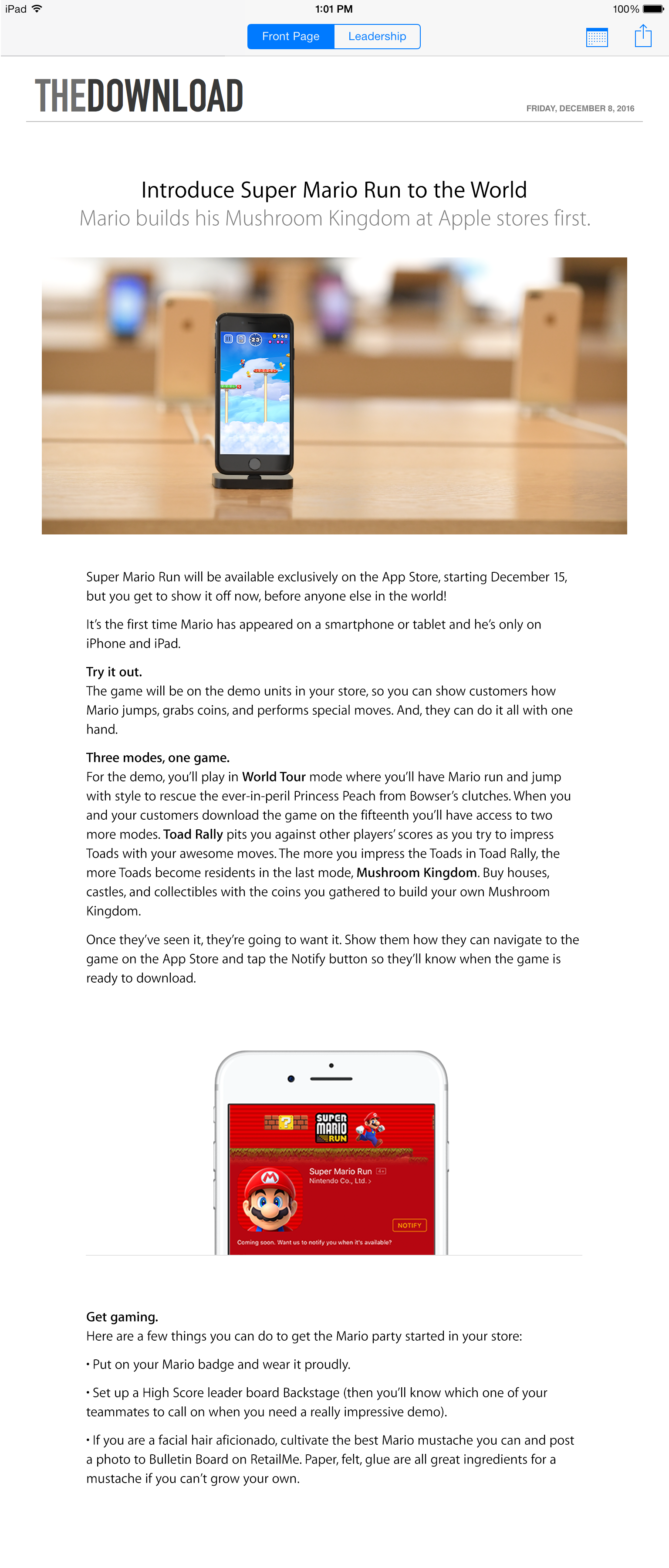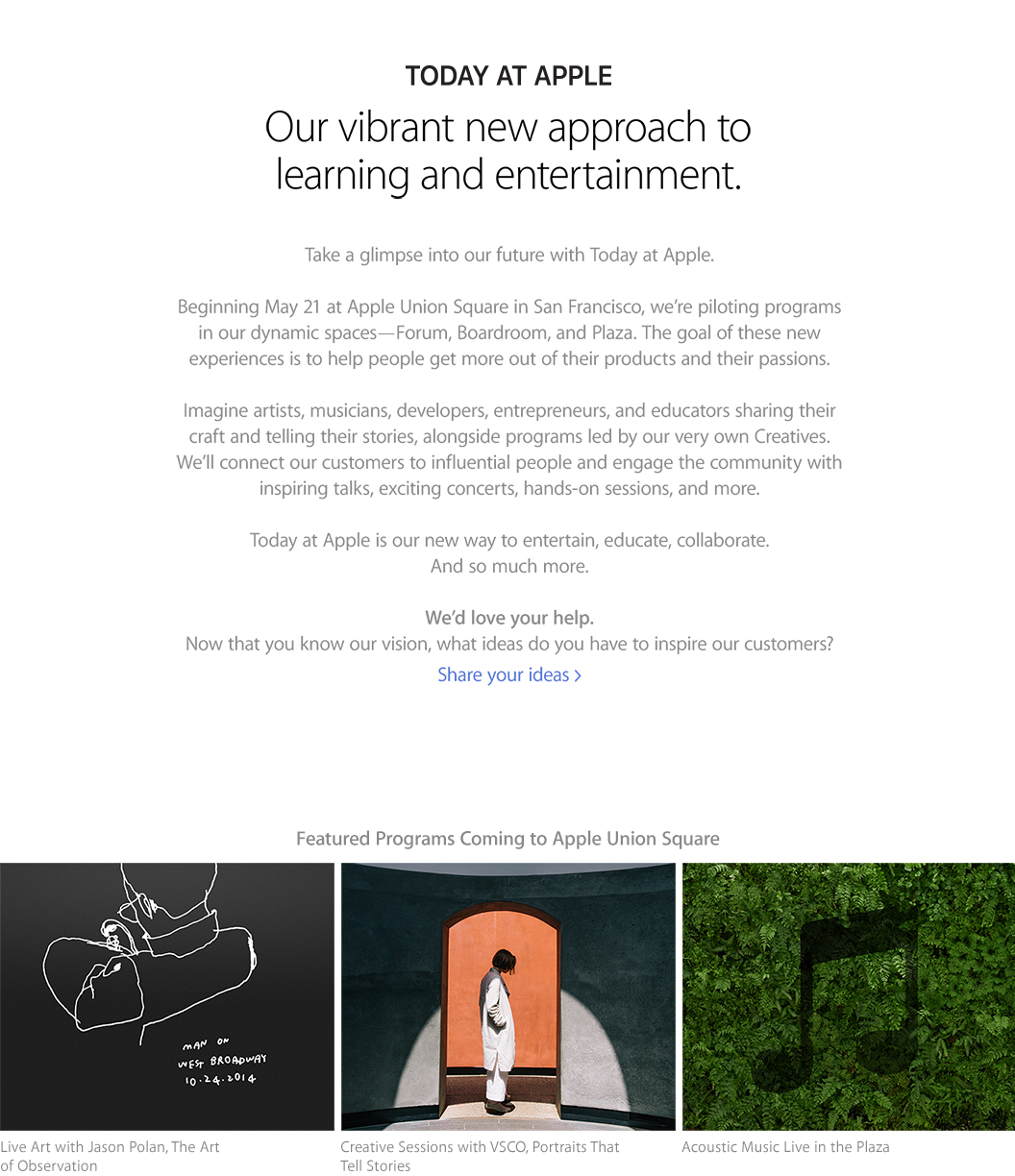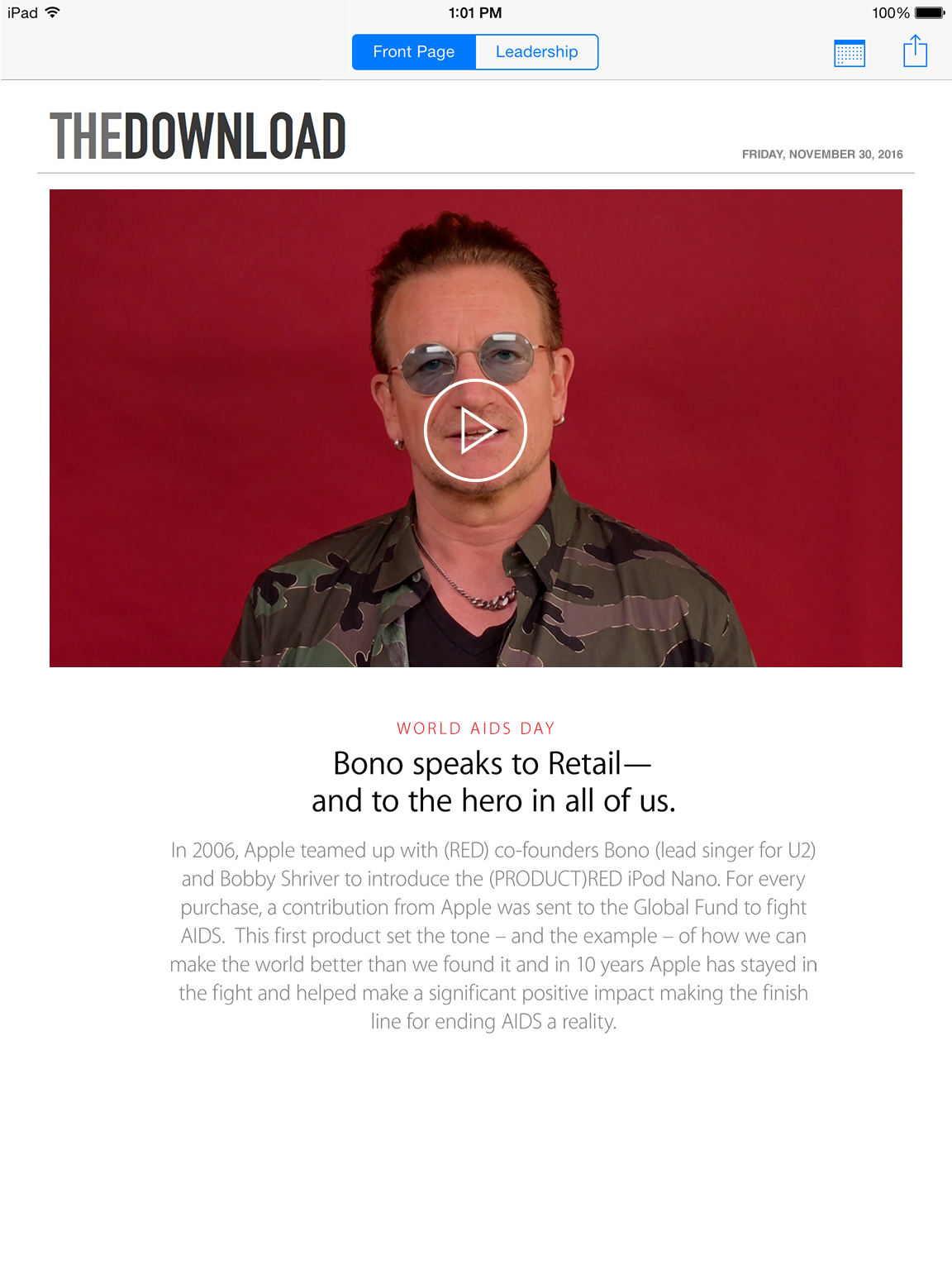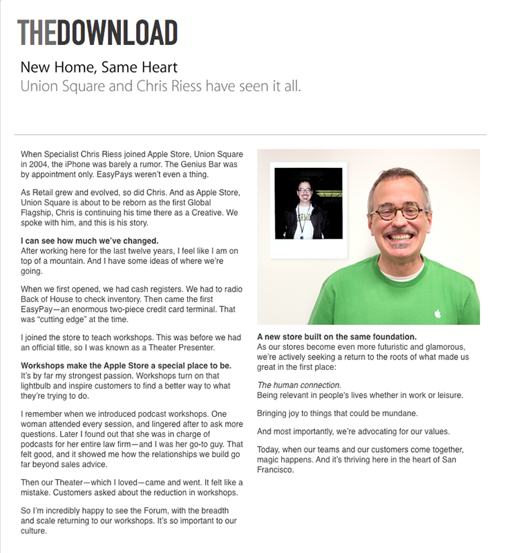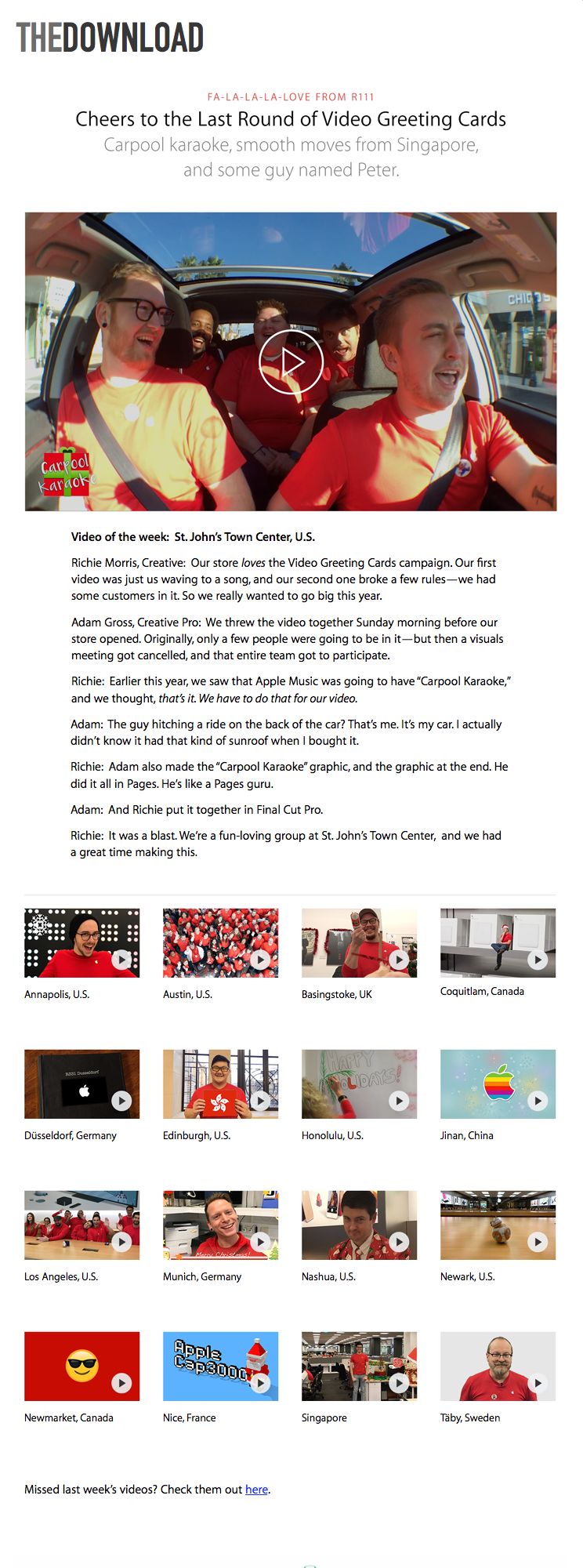 Collaborated with strategists, copywriters, visual designers, and video producers to drive the production of editorial content for 65,000 Apple Retail Store employees.